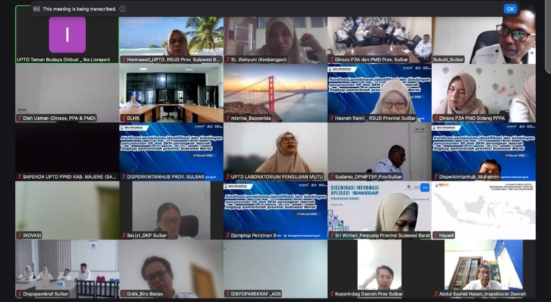 Artikelnews, Mamuju –Pemerintah Provinsi Sulawesi Barat melalui Biro Organisasi dan Tata Laksana (Ortala) menggelar Rapat Koordinasi Pembinaan dan Identifikasi Penyusunan Standar Pelayanan (SP) dan Survei Kepuasan Masyarakat (SKM) secara daring melalui Zoom Meeting, Rabu (4/2/2025).