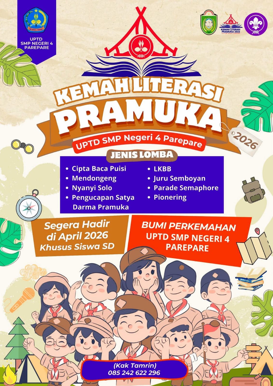 Artikel.news, Parepare — UPTD SMPN 4 Kota Parepare melalui Gugusdepan Gerakan Pramuka siap kembali menggelar Kemah Literasi Pramuka 2026.