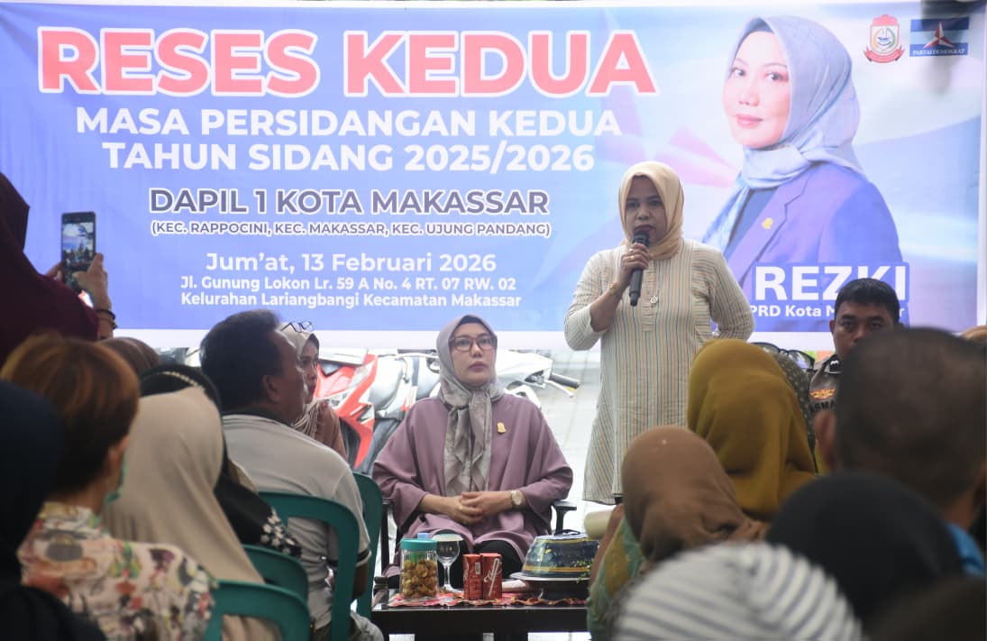 Artikelnews, Makassar – Anggota DPRD Kota Makassar, Rezki, kembali menggelar reses kedua masa persidangan kedua tahun sidang 2025/2026 di Jalan Gunung Lokon Lorong 59, Kelurahan Lariangbangi, Kecamatan Makassar, Jumat (13/2/2026).