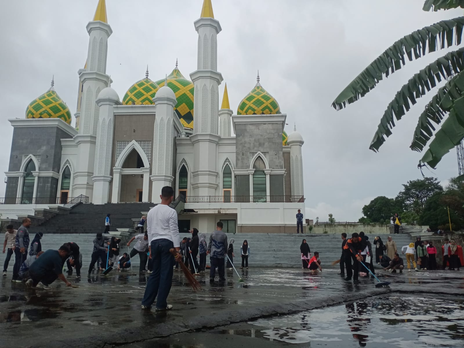 “Kami minta semua Perangkat Daerah yang bertugas di Masjid Agung untuk membawa alat sikat dan lainnya untuk membersihkan setiap titik dan sudut, terutama tangga dan lantai di pelataran masjid. Agar masjid terlibat lebih bersih, indah, rapi dan nyaman digunakan terutama dalam beribadah saat Bulan Ramadan nanti,” kata Adriani.