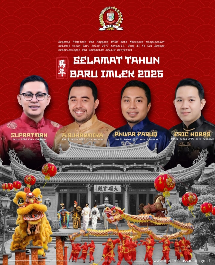 “Pimpinan dan Anggota DPRD Kota Makassar mengucapkan Selamat Tahun Baru Imlek 2577 Kongzili – 2026 kepada seluruh warga yang merayakan,” tulis akun media sosial DPRD Kota Makassar.