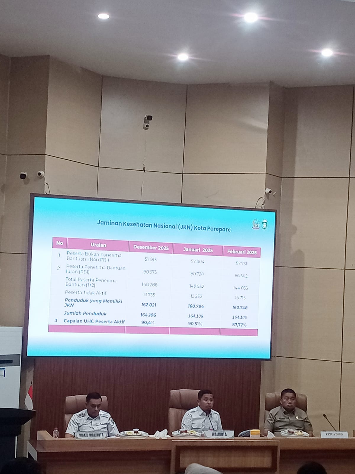 “Di pusat banyak BPJS dinonaktifkan, tapi di Parepare tidak ada alasan masyarakat tidak dapatkan layanan kesehatan. Parepare sudah dapat penghargaan UHC kategori Madya berkat dukungan dari DPRD dan semua stakeholder, jadi tidak boleh ada warga Parepare yang tertinggal dalam mendapatkan layanan kesehatan,” tegas Tasming dalam Rapat Koordinasi Tindak Lanjut Arahan Presiden dan Gubernur dirangkai Forum Konsultasi Publik Rancangan Awal RKPD 2027 di Ruang Pola Kantor Wali Kota, belum lama ini.