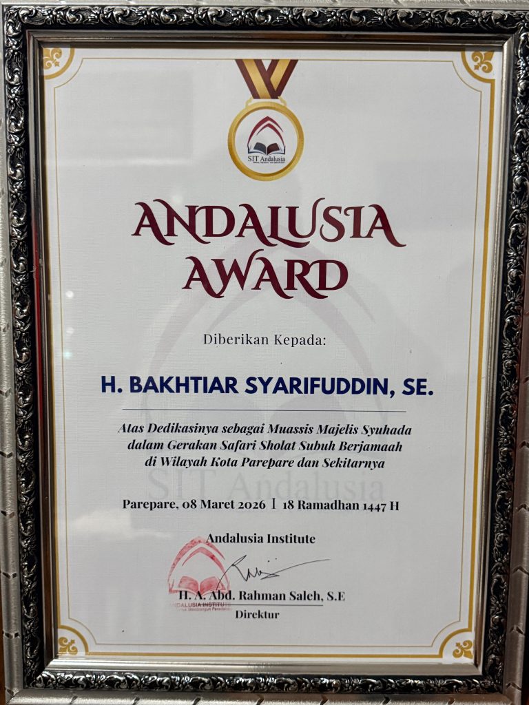 Artikelnews, Parepare — Bersama Wali Kota Parepare Tasming Hamid, Muassis Majelis Syuhada Parepare H Bakhtiar Syarifuddin (HBS) turut menerima penghargaan Andalusia Award dari Andalusia Institute.