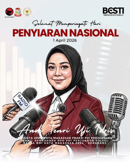 Artikelnews, Makassar – Anggota DPRD Kota Makassar dari Fraksi PDIP, Andi Tenri Uji, mengucapkan selamat Hari Penyiaran Nasional ke-93 pada Rabu (1/4/2026) hari ini.