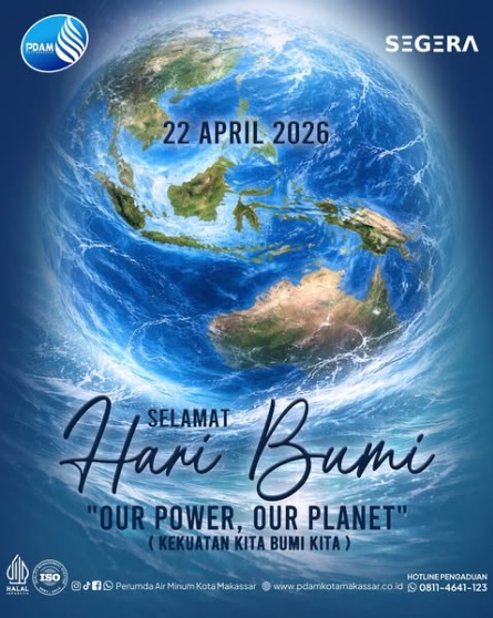 Artikelnews, Makassar – Perumda Air Minum Kota Makassar mengucapkan selamat Hari Bumi Internasional tahun 2026 pada hari ini, Rabu (22/4/2026).