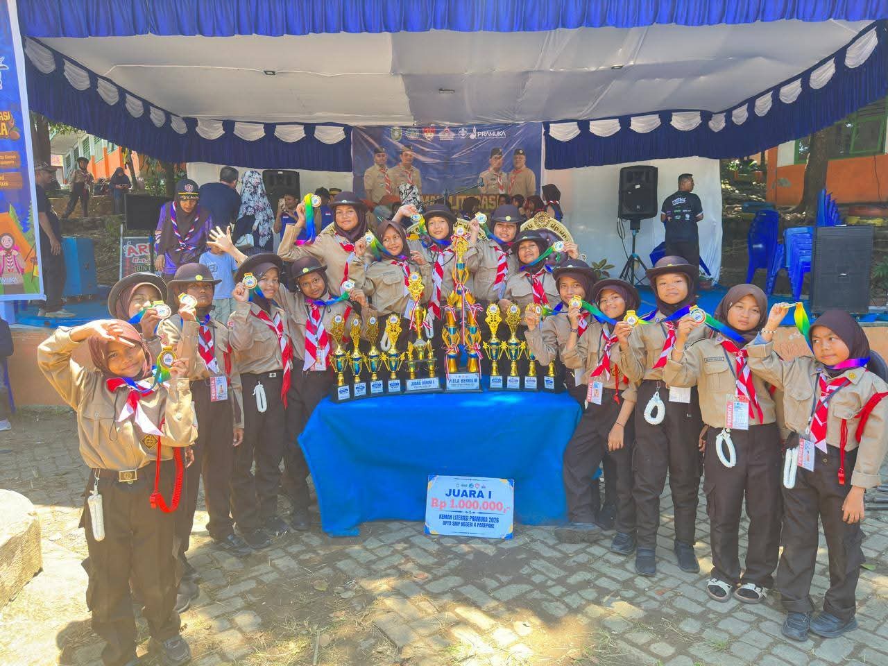 Pada kegiatan Kemah Literasi Pramuka 2026, SDN 48 Parepare berhasil meraih juara umum 1 memperoleh berbagai penghargaan sebagai bentuk apresiasi atas prestasi yang diraih.